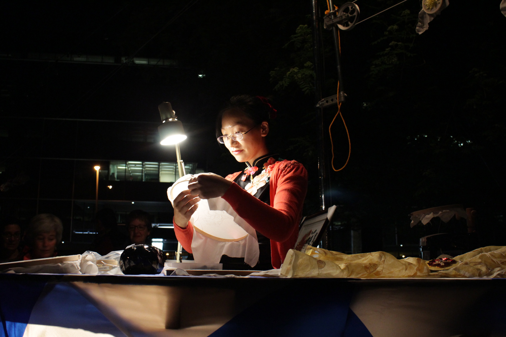 La photographie capte ce moment de suspension : une clarté fragile qui se dresse contre l’obscurité urbaine. La composition concentre tout le regard sur ce point incandescent où la matière, la patience et la lumière s’accordent. Le reste — visages flous, câbles, immeubles — n’est plus que décor du visible. Ce n’est plus la femme que l’on regarde, mais la persistance du geste, cette manière qu’a le travail manuel de résister au temps social.