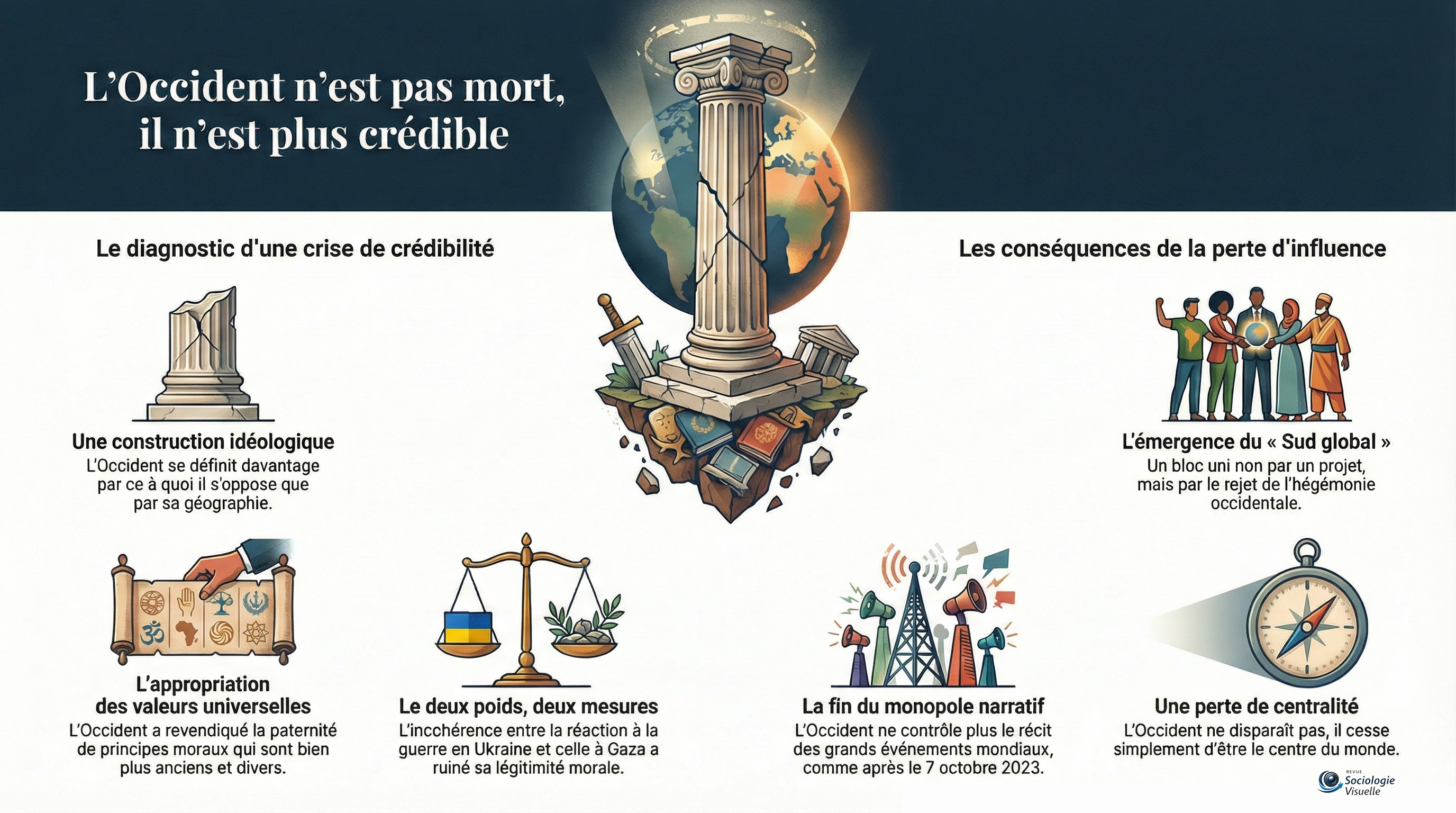 Le monde contemporain ne rejette ni les valeurs démocratiques, ni l’idée de normes communes. Il rejette leur appropriation exclusive. Ce qu’il demande, souvent implicitement, c’est une universalité réellement dialogique, ouverte à la contestation et à la réflexivité. L’Occident peut continuer à défendre ses principes. Mais il devra accepter qu’ils ne lui appartiennent pas. Et surtout, qu’ils puissent être retournés contre lui. Ce renversement n’est pas une menace. C’est peut-être la condition minimale pour que l’universel cesse d’être un discours de pouvoir et redevienne un horizon commun.