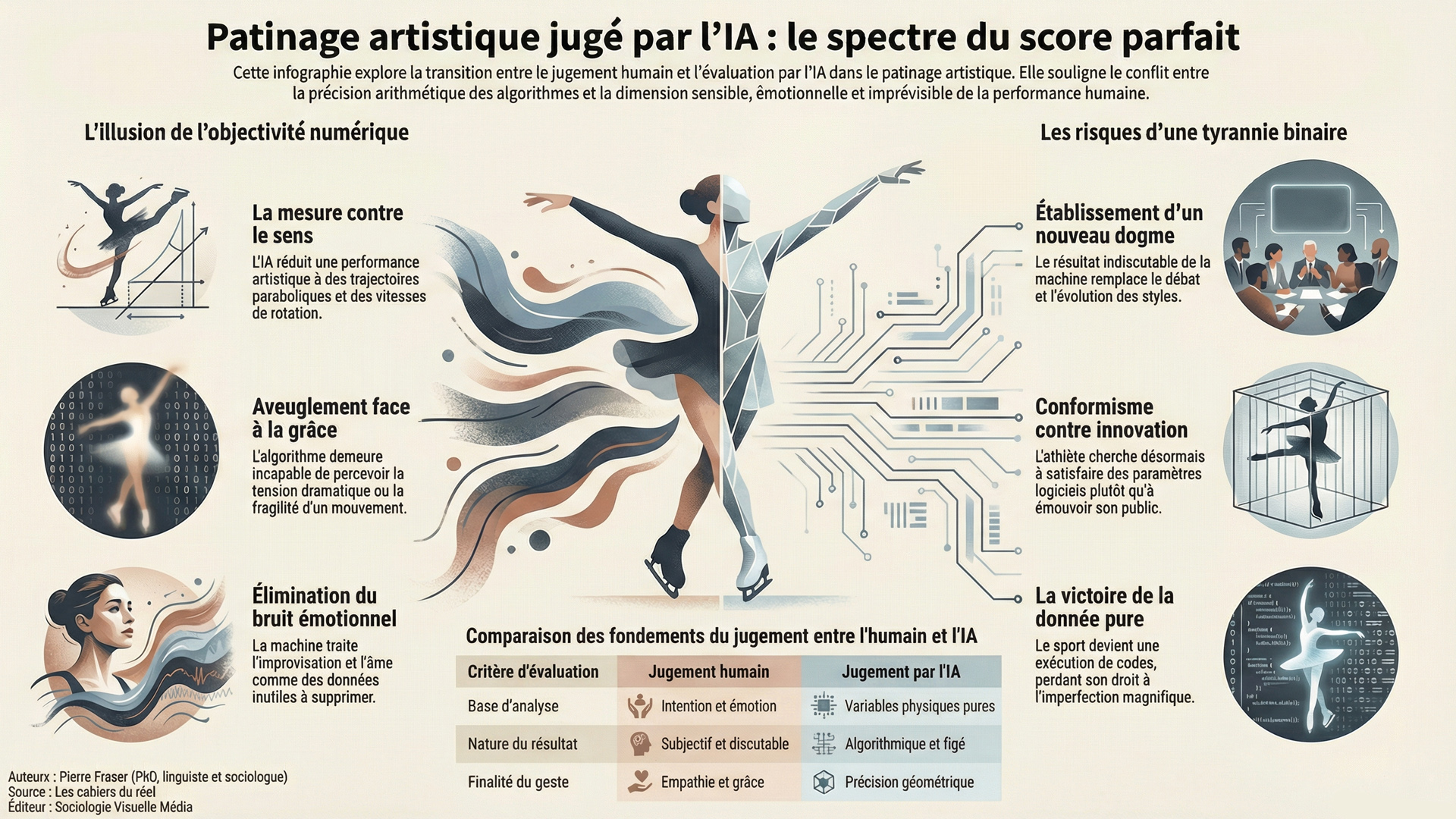 En fin de compte, si l’IA finit par juger le patinage, elle ne fera que valider sa propre supériorité technique dans un miroir déformant. L’athlète ne cherchera plus à émouvoir son public, mais à satisfaire les paramètres d’un logiciel. Nous n’aurons pas mis fin à l’évaluation subjective ; nous aurons simplement remplacé l’empathie humaine par une tyrannie binaire. Le sport, devenu une simple exécution de codes, perdra alors ce qui le lie à notre humanité : le droit d’être magnifiquement imparfait.